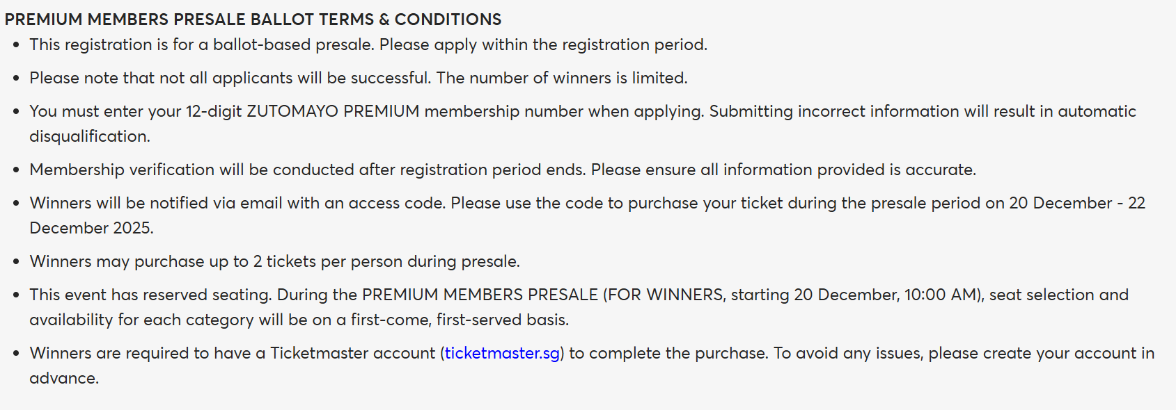 *Registration link will only be available from 1 December 10:00am. Please refer to the event page on Ticketmaster on HOW TO JOIN THE ZUTOMAYO PREMIUM MEMBERS PRESALE BALLOT